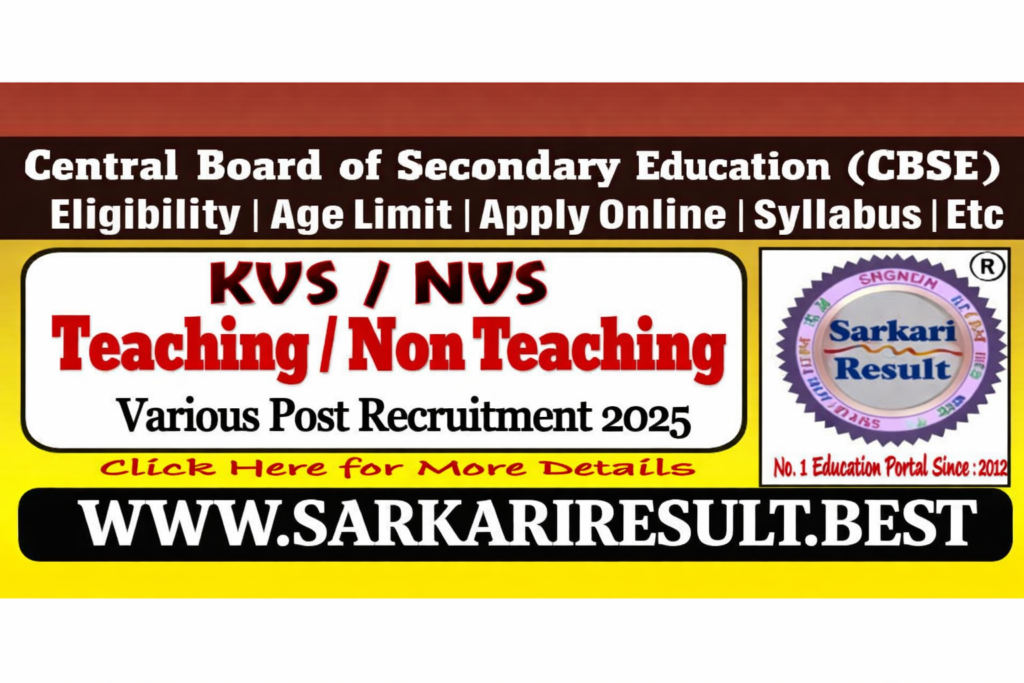 - CBSE KVS / NVS Teaching and Non Teaching Recruitment for Various Post Candidate Can Apply Betweenย 14/11/2025 to 11/12/2025